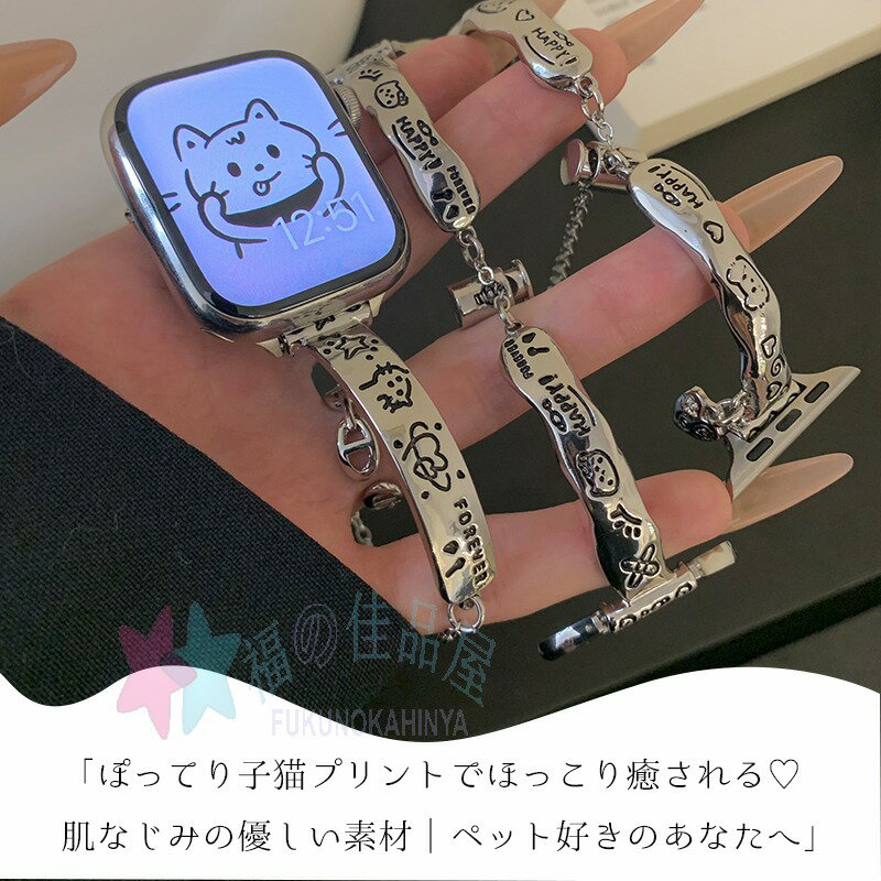 【仕様】「ぽってり子猫プリントでほっこり癒される|肌なじみの優しい素材|ペット好きのあなたへ」バンドには衛生的|錆びにくい|軽量で耐久性抜群|水/汗に強く長期間ご使用いただけます。スマートウォッチ用に設計されたパンドは細部まで精巧に仕上げている為、しなやかにカープし、手首にフィットします。セット内容バンドのみ備考