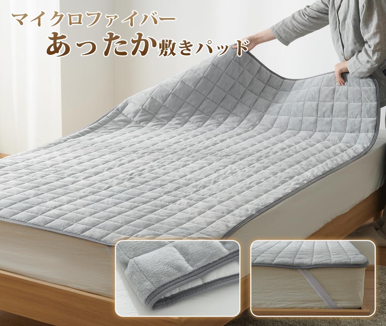 Atokazo あったか 敷きパッド 冬用 秋冬 マイクロファイバー 吸湿発熱 厚手 暖か TEIJIN中綿 抗菌防臭 洗える 洗濯可能 おしゃれ 防寒対策 毛布パッド 敷パット 敷き毛布 ベッドパッド パッドシーツシーツ(ワイドキング・200X200cm, グレー)