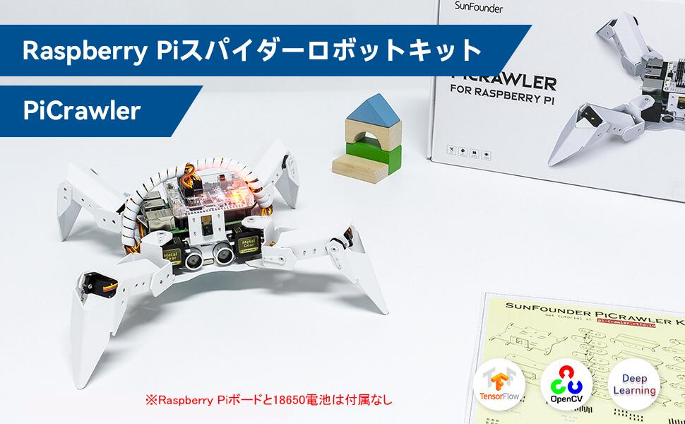 【Raspberry Pi スパイダーロボット】 PiCrawlerは、Raspberry Pi 4B、3B、3B +、2Bと互換性のある柔軟なAIロ四足スパイダーロボットキットです。 PiCrawlerは、10歳以上の子供と大人に向けの商品となります。ロボットプログラミング、OpenCV、TensorFlowとディープラーニングの勉強と研究に最適です。