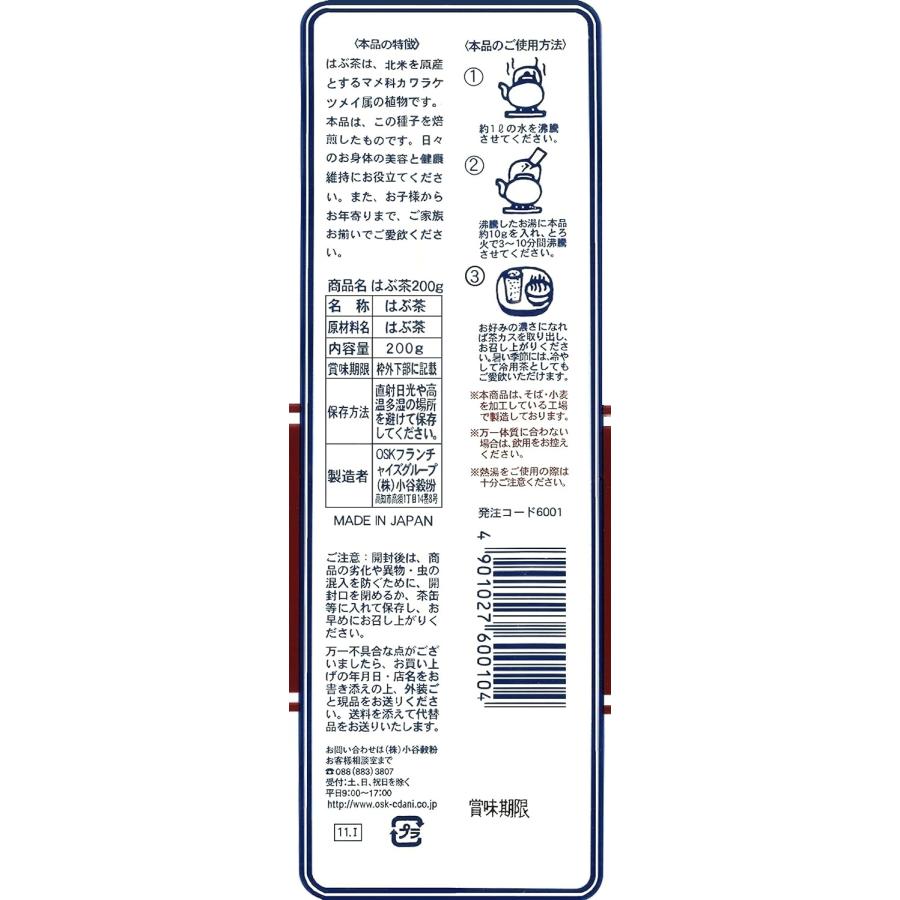 焙じはぶ茶 健康茶 リーフ 200g×1 高知 日本製 香ばしい ノンカフェイン はぶ茶100% 日常の常備茶に 温冷両用 はぶ茶/ハブ茶 決明子 OSK 小谷穀粉