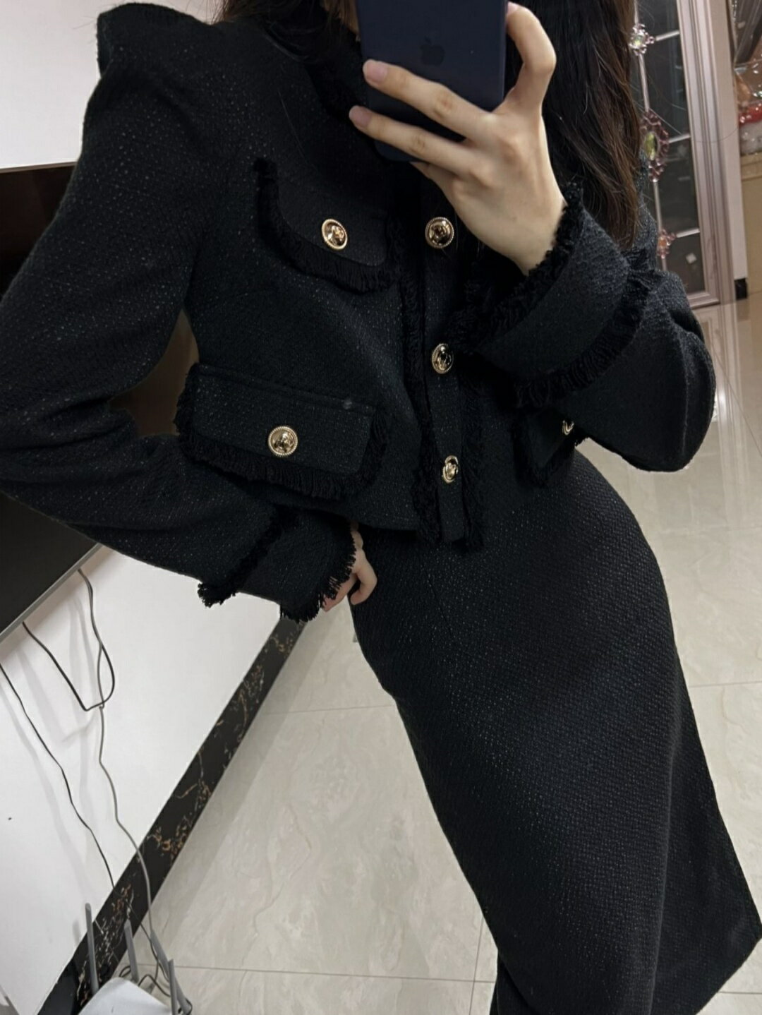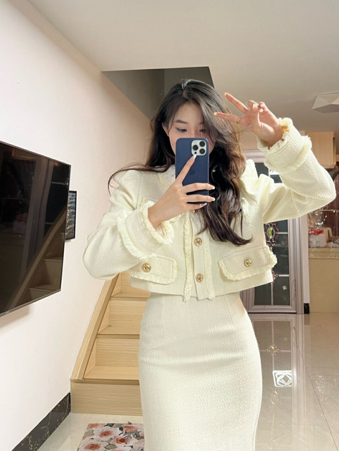 セットアップ レディース 秋冬 きれいめ 韓国 風 スーツ 新商品 女性用 ファッションスーツ エレガント ショートジャケット スリム スリット ロングスカート アプリコット 黒 ブラック 7サイズ 大人女子