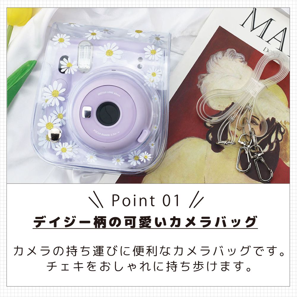 チェキ instax mini 11/12 デイジー柄チェキバッグ ストラップ付き IX-DB2680 | ケース カバー カメラバッグ 花柄 クリア 透明 ソフトケース キズ 汚れ 保護 収納 持ち運び かわいい ショルダー ストラップ アクセサリー