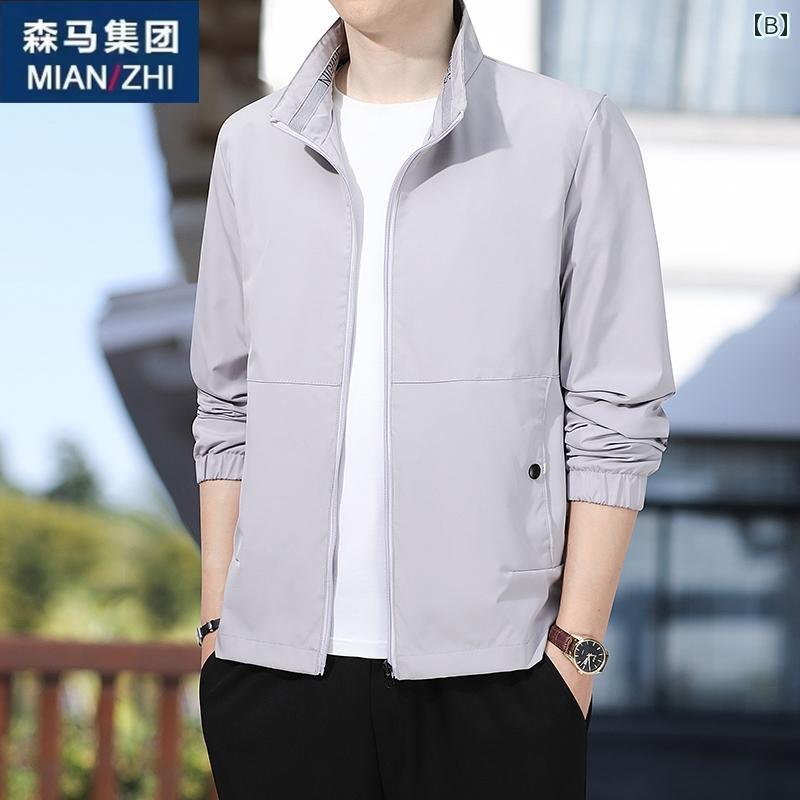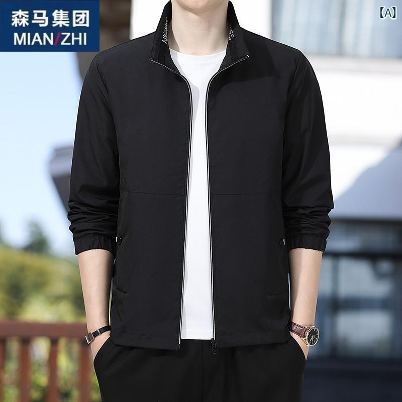 メンズ 中高年 パパ ジャケット ビジネス カジュアル トップス ジップアップ アウター 春秋 ブラック カーキ ブルー
