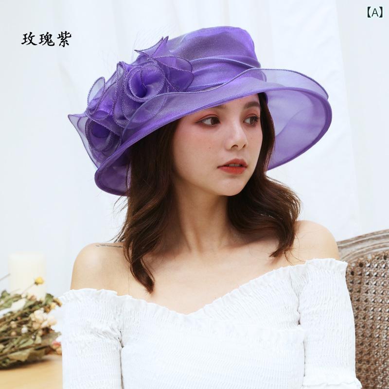 ハット レディース 春夏 つば広 オーガンジー 花柄 メッシュ UVカット 日よけ 通気性 レトロ エレガント 旅行 リゾート ビーチ 上品