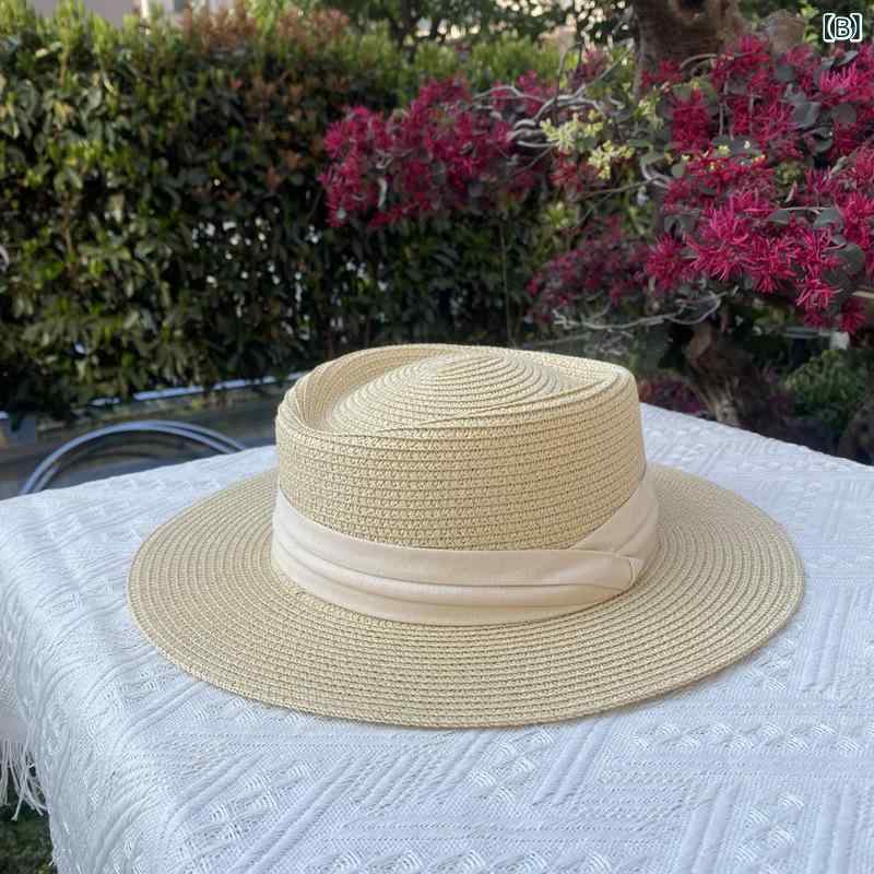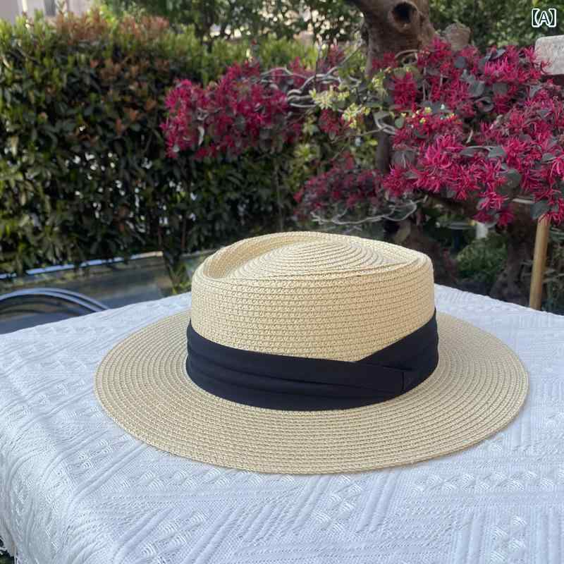 麦わら帽子 レディース 春夏 UVカット 日よけ 平天ハット リボン付き 高級感 通気性 カジュアル エレガント 万能 シンプル リゾート ペーパーストロー