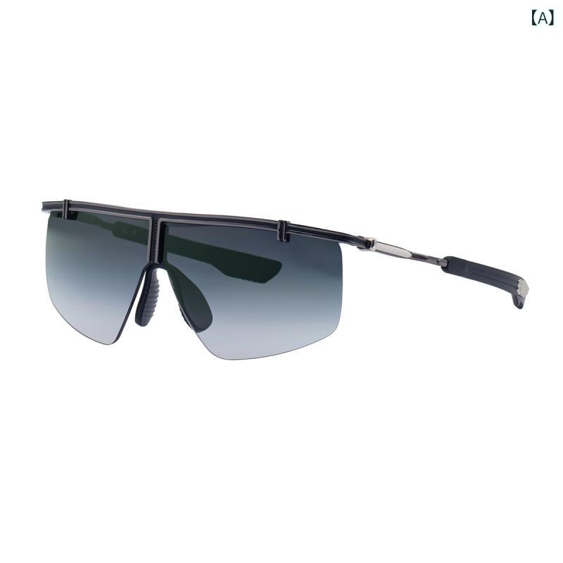 サングラス メンズ サイクリング アウトドア スポーツ 運転 ドライブ 登山 UV400カット 紫外線対策 一体型レンズ スクエア型 ポリカーボネート製 樹脂 メタルフレーム グレーレンズ ブラックフレーム
