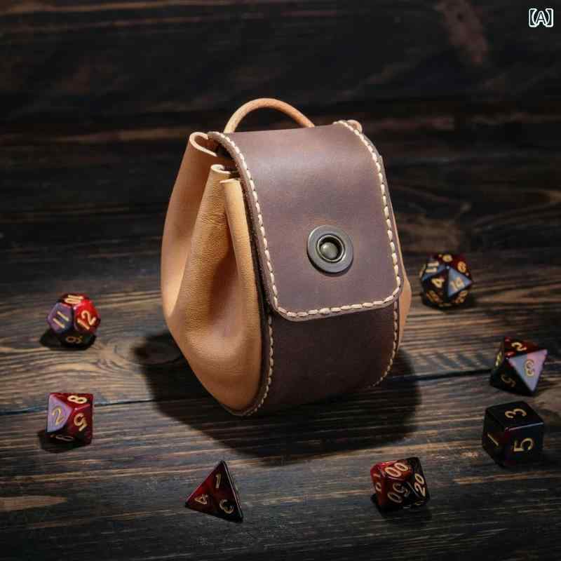 ダイスポーチ ゲーム用サイコロ収納 巾着袋 PUレザー ブラック 八角形 ダイストレイ 携帯 ポータブル ボードゲーム TRPG 旅行 アウトドア 小物入れ