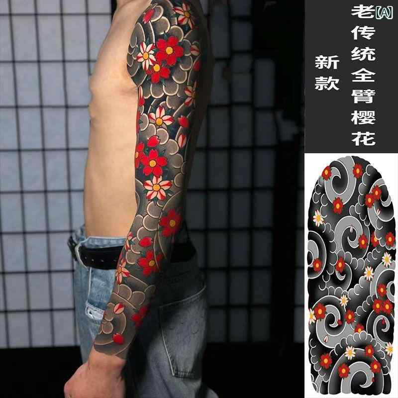 タトゥーシール ステッカー 和彫り風 男性向け カラー 龍 桜 花 腕 鶴 腕全体 脚 広範囲 タトゥー ボディアート フェイク 入れ墨 刺青 和風 伝統的 古風 メンズ レディース 防水 ヤンチャ ギャング