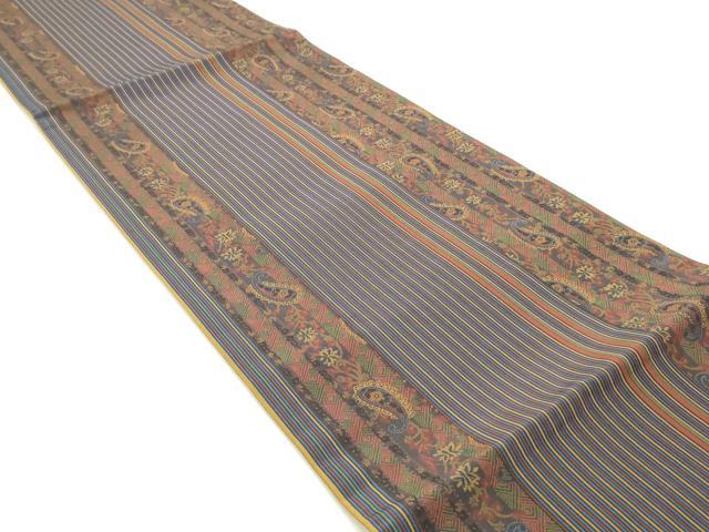 平和屋着物●全通柄袋帯 紬地 ペイズリー柄 間道 正絹 逸品 DAAY0346ob
