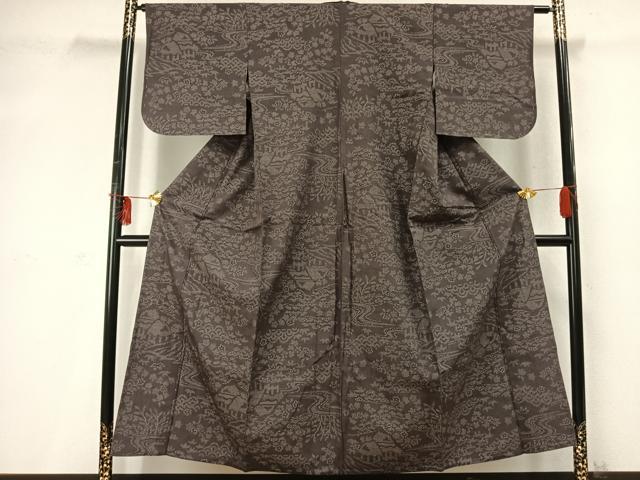 平和屋着物▽結城紬 単衣 80亀甲 風景文 正絹 逸品 未使用 AABD0215fy