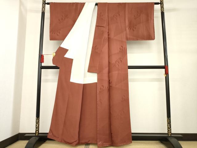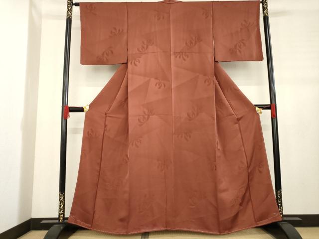 平和屋着物●上質な色無地 菊地紋 海老茶色 正絹 逸品 未使用 AABD1111ck