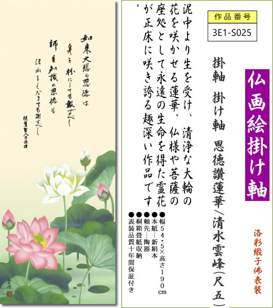 掛軸 掛け軸 恩徳讃蓮華/清水雲峰(尺五)表装 床の間 おしゃれ モダン[送料無料]おんとくさんれんげ ギフト 贈答[幅54.5cm×高さ190cm]