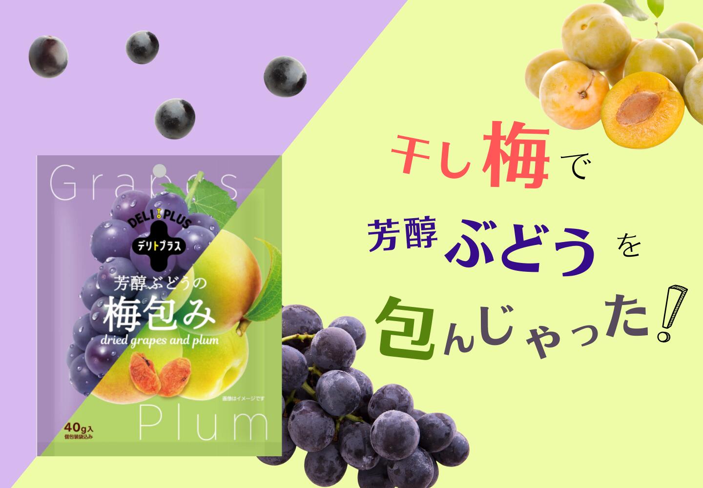 デリトプラス 芳醇ぶどうの梅包み 40g×3袋セット 半生ドライ 完熟果実 梅干し 種なし レーズン ドライフルーツ