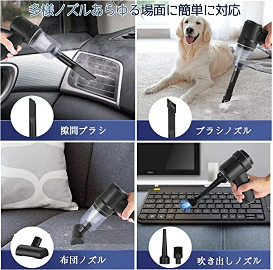 ハンディクリーナー 多機能ミニ掃除機 車用掃除機 コードレス 車用 カークリーナーパワフル USB充電式はんでい 乾湿両用 10000PA 強力吸引力小型クリーナー高速充? 低噪音?策 LED照 3in1電動エアーポンプ機能付き 車載ミニポータブルコードレス掃除機