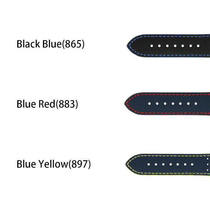 モデル名 SUMO (スモウ) 番号 X 5485 D37 厚さ 約4.3mm 長さ 男性サイズ 6時側:120mm 12時側:73mm 素材 表面: カーフ 裏面: シンセティックレザー カラー Black Blue(865) Blue Red(883) Blue Yellow(897) 商品説明 カラフルなステッチが人目を惹くベルトです。 しっかりした作りで汗や汚れにも強く、夏場に特にお勧めできる商品です。 価格 6,600円(税込) ※こちらの商品はバンド本体のみの販売となっており、バネ棒の付属は致しません。