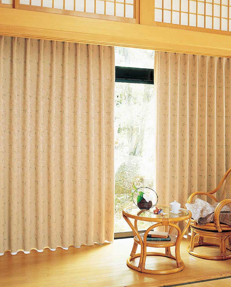 ●ドレープ/C1141カーテンで変わるインテリア部屋の雰囲気を決めるのに、重要な役目を果たしているのはナニ?照明でしょうか、壁紙、それともインテリアでしょうか。実は、部屋の雰囲気に大きな影響を与えているもの、それはカーテンです。カーテンは部屋の中でも、大きな面積を占めています。だから、お部屋に入ったときにパッと目に入ってくるカーテンが、そのお部屋のイメージに大きな影響をあたえます。カーテンは、お部屋のイメージだけではなく、いろいろな機能を持っている材質を選ぶ事で、生活を快適にもします。外からの光を遮り、お部屋の光を漏らさない「遮光 カーテン」。特殊な繊維や織りなどによる「UVカット レース」。カーテン生地に織り込まれた薬剤によって、タバコやペットの臭いなどを消す「消臭」なども準備されています。カーテンには、外国ブランド品や国産品、色や柄、材質の風合いなどにもいろいろなものがあり、あなたの性格がカーテンにあらわれます。プレーンシェードについてドレープもレースも生地の表情そのものを楽しめる人気のスタイル。チェーンやコードで生地を上下に昇降させて、自由な位置で止められます。ローマンシェードのプレーンシェードを当店は、選定して販売しています。シャープシェード、タックソェード、バルーンシェード、ラウンドシェードなどはお問い合わせください。Designおもむき乙羽II C1141日本の自然美を巧みに融合させ、立体的に織り上げました。オーダーカーテンの縫製についてオーダーカーテンは、カーテンの生地を2倍使用して作った2倍ヒダカーテンと、1.5倍使用した1.5倍ヒダカーテンそして1.3倍使用したフラットカーテンがあります。2倍ヒダは、ヒダ山が高く、綺麗なウェーブがでるのでおすすめです。華麗な雰囲気になります。1.5倍ヒダは、既製品のカーテンの縫製によく用いられる仕様です。ヒダをとるための生地が少ないので、ウェーブの出方も控えめになります。フラットは、ヒダ山をとらないため、自然なウェーブでシンプルなスタイルです。カーテンの生地のみの販売も出来ますので、手作りのカーテンやクッション、ベッドカバーなどお試しください。機能性マークについてUVカットやホルムアルデヒド分解、遮熱や遮音など、カーテンの機能も様々。深い眠りを約束する遮音・遮光性やインテリアを紫外線から守る力、シックハウス原因物質を分解する力...。ウォッシャブルマークは、ご家庭の洗濯機で水洗いすることができるカーテンです。遮光カーテンについて遮光カーテン 1級:遮光率99.99%以上遮光カーテン 2級:遮光率99.80%以上 99.99%未満遮光カーテン 3級:遮光率99.40%以上 99.80%未満同じ遮光等級でも、実際の見え方は品番によって異なりますので、事前に商品の確認をおすすめします。カーテンは取付け方法によって、カーテンの上部や下部、サイドから光が漏れます。遮光効果をできるだけ発揮させるためには、カーテンボックスを使用し、サイドをリターン式に、カーテンの丈も床につく長さにしてください。両開きカーテンの場合は交叉レールの使用をおすすめします。オーダーカーテンについてオーダーカーテンとは、窓の大きさにあわせて、最適な大きさのカーテンを縫製してもらうことです。オーダーカーテンなら、一つひとつの窓の大きさに合わせて、幅や丈を1cm単位でご注文できます。どうしても思い通りの大きさが見つからないケースや、注文ホームなどで窓のサイズが特殊なときには、オーダーカーテンがおすすめです。内装やインテリアにこだわるお家では、オーダーカーテンが選ばれています。そして、通販サイトなどを利用して、オーダーカーテンをショッピングする人は増加しています。生活様式や部屋の目的にピッタリのカーテンをお選びください。▼[標準] 形態安定加工(スタイリッシュウェーブ縫製) 約2倍 へ▼ハイグレード縫製 約2倍 へ▼ハイグレード縫製 約1.5倍 へ▼プレーンシェード(コード式) へ▼生地のみ(円/10cm) へ ※1m以上10cm単位で販売