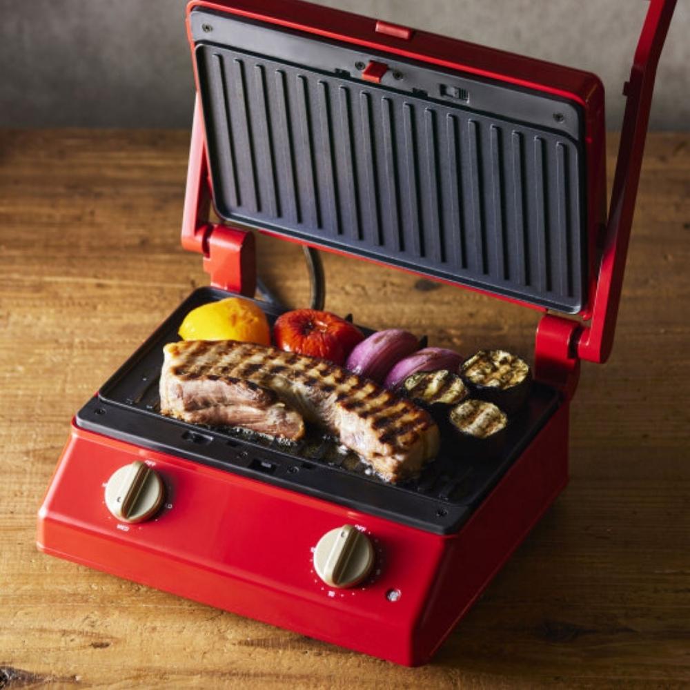 【仕様】 カラー :レッド、グレージュ サイズ :W285mm×H145mm×D240mm 重量 :約3000g ※重量はホットサンドプレート使用時、グリルプレート重量:約765g(1セットあたり) コード長 :1.3m 素材・成分 :本体/フェノール樹脂/スチール/アルミニウム合金、プレート/アルミニウム合金( 内面フッ素樹脂塗装) 生産国 :中国 機能 :タイマー付き、プレート取りはずし可、温度調節、油受けトレイ 電源 :AC100V 定格消費電力:900W ※この製品を使用できるのは日本国内のみで、海外では使用できません。 注意事項 ・実物に近い色を画像で表現していますが、撮影環境、お使いのディスプレイなどの条件によって多少の誤差が生じる場合がございます。 ・ご注文タイミングやご注文内容によっては、購入履歴からのキャンセル、修正を受け付けることができない場合がございます。 ・複数の同時注文がおきた場合、システムのタイムラグの理由から、在庫切れの状態でも購入が可能となる場合がございます。その場合、こちらからメールでご連絡させて頂きます。 おすすめ特集
