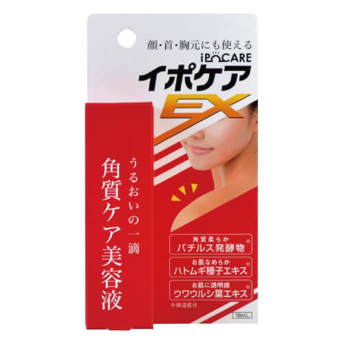 ブランド名 イポケアEX 商品名 イポケアEX 内容量 18mL×3 特徴 首・顔・肩・胸などのポツポツケア美容液。バイオテクノロジーが創り出した特殊成分『バチルス発酵物』を使用した美容液で角質粒をケアし、肌のキメを整えます。 さらに美しい肌を目指す『ハトムギ種子エキス』『ウワウルシ葉エキス』を配合。 使用方法 入浴または洗顔で汚れを落とし、化粧水等でお肌を整えた後、適量(1〜2滴)を手に取り、顔や首、胸元等のお手入れポイントに直接塗布してください。 ※成分の特性上、成分が凝固したように見える場合がございますが、品質に問題ございません。よく振ってからご使用ください。 使用上の注意