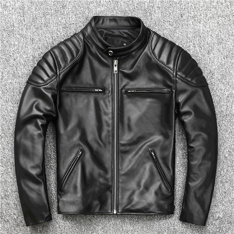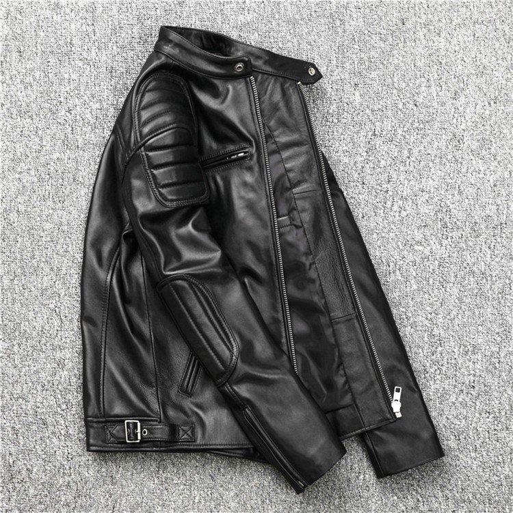 羊革レザージャケット★黒★秋新作★立ち襟ライダースジャケットオートバイ服
