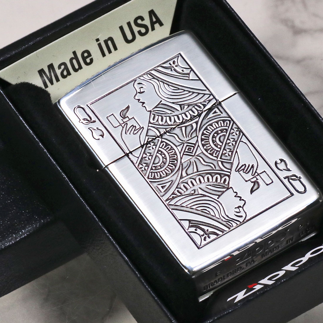■付属品:ZIPPO社専用箱、ZIPPO社保証書 ※ご注意 ・お客様のご利用のブラウザの環境により商品の色合いが実際のものと多少異なる場合がございますので、予めご了承ください。 クイーン ジョーカーはこちら ギフトボックスのご購入はコチラから 本革ライターケースも付いたギフトボックスのご購入はコチラから
