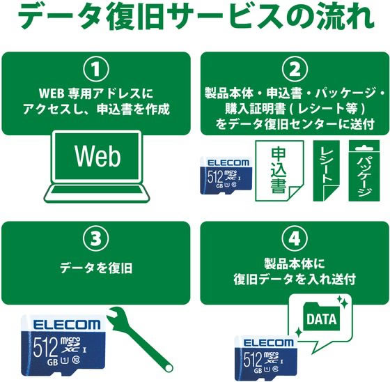 【検索用キーワード】エレコム ELECOM えれこむ MF−MS512GU11R SDカード microSDカード マイクロSDカード メモリ メモリカード 512GB class10 class1 高速 転送 データ復旧 記録メディア テープ microSD SDHCメモリーカード X152NWデータ復旧サービス付きのmicroSDXCメモリカードです。