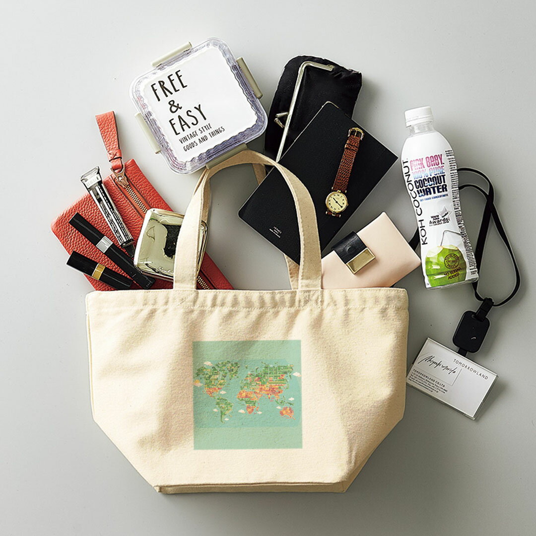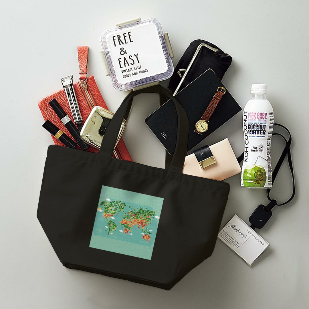 デザインランチバッグ キャンバス デイパック バッグ レディースバッグ トートバッグ ナチュラル 黒 black 016030 世界地図 wordmap カラフル
