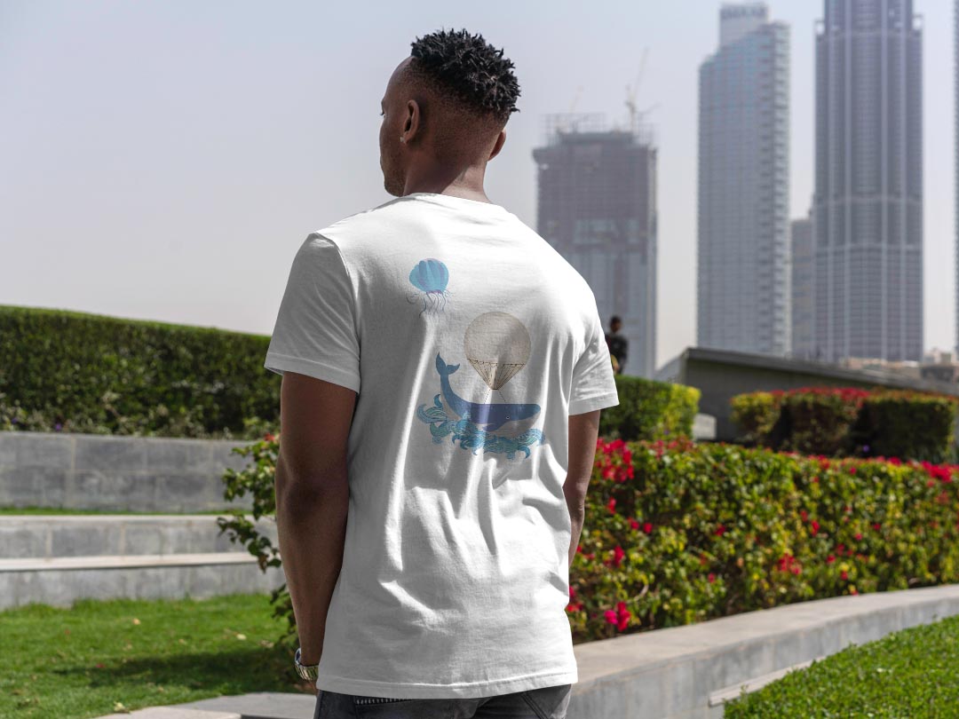 Tシャツ メンズ バックプリント半袖 ホワイト グレー デザイン XS S M L XL 2XL tシャツ ティーシャツ T shirt 032256 鯨
