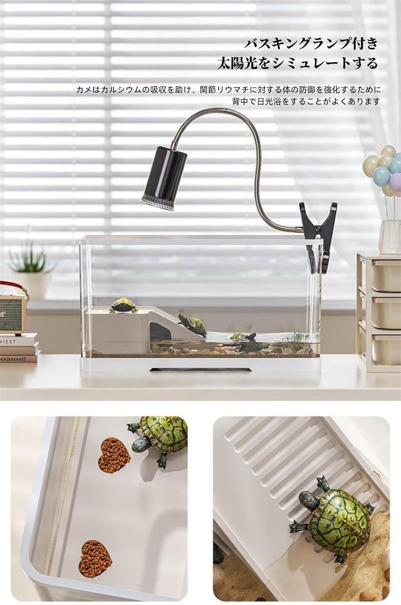 亀の飼育ケース 亀 水槽 大きい カメ用水槽 初心者セット 蓋付き 収納機能 水交換超簡単 餌やりが便利 透明 軽量 両生飼育箱 亀ケージ 脱出防止 亀の楽園 亀 リクガメ 半水棲ガメ ボックス 排水孔 耐久性 爬虫類 両生類用 カメ生息地 360°観察 送料無料