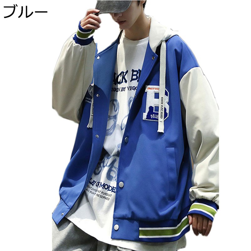 スタジャン フード付き ユニセックス ジャケット メンズ 大きいサイズ スタジアムジャンパー 刺繍 配色切り替え ゆったり 野球ユニフォーム 秋冬服 ヒップホップ 原宿系 ペアルック アウター 通勤 通学
