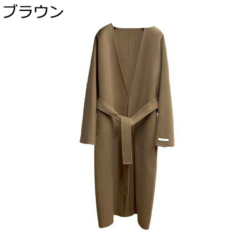 レディース ラシャコート ロングコート カーディガン Vネック ゆったり ビッグシルエット フェミニン 日系 ベルト付き ヴィンテージ カジュアル ベーシック 通勤 ストリート 女性らしい