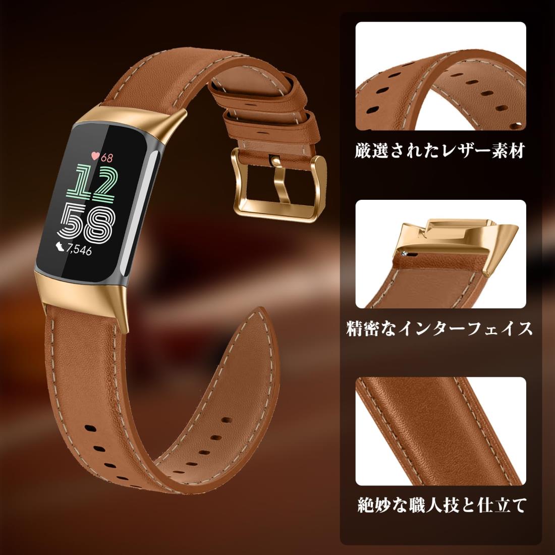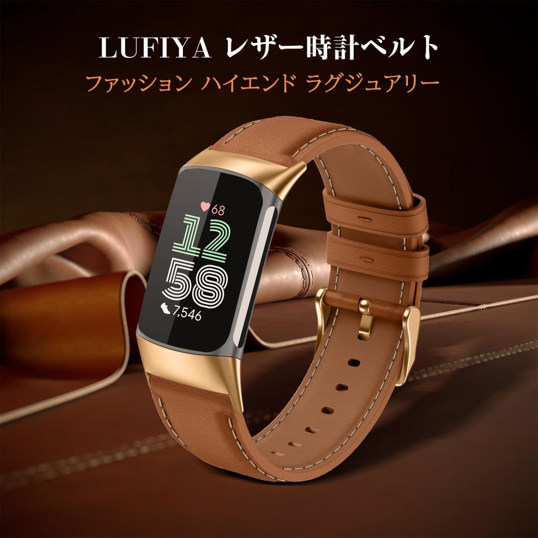 [LuFiYa] 時計バンド Fitbit Charge 6/Fitbit Charge 5 対応 レザーバンド 交換バンド 時計ベルト 腕時計バンド ビジネス風 柔軟 男女通用 牛革ストラップ Fitbit Charge 6/Fitbit Charge 5 用 交換ベルト (ブラウン)