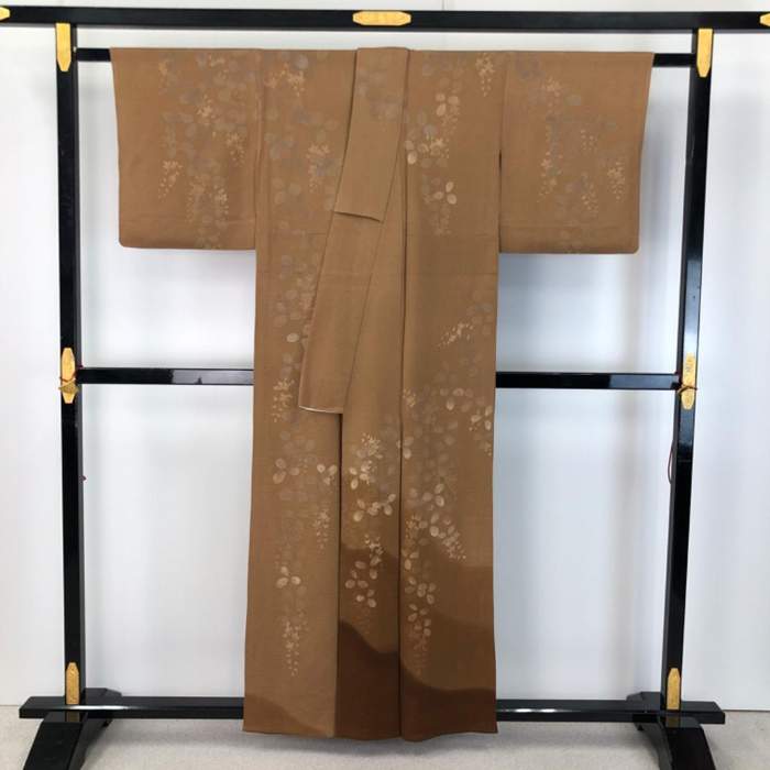 -説明-夏の付下げのお着物です。幹色ベースの絽縮緬に暈し、萩模様の柄裄がデザインされた雰囲気の良い素敵なお品でございます。-状態-