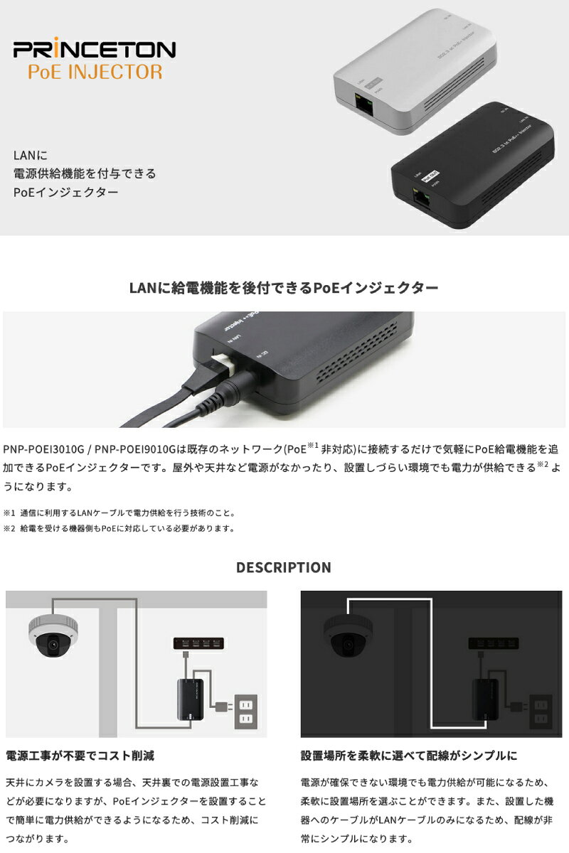 Princeton 90W出力対応 PoEインジェクター ブラック # PNP-POEI9010G プリンストン (ネットワーク機器)