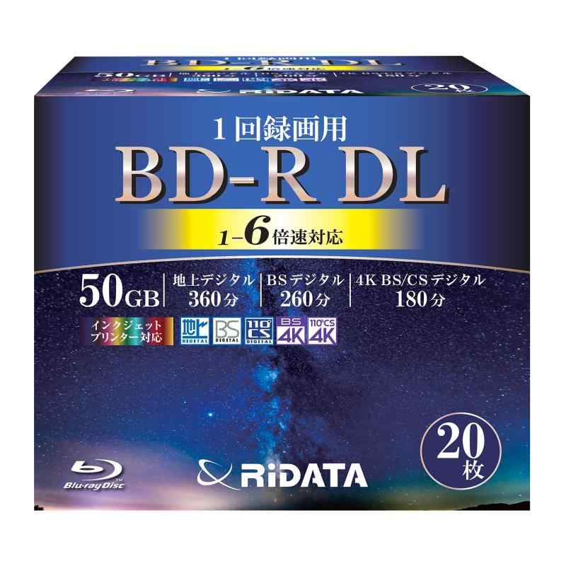 RIDATA(ライデータ) 【RiTEK製】1回録画用 ブルーレイディスク 片面2層 BD-R DL 50GB 1-6倍速 20枚 ホワイトプリンタブル スリムケース (BR260EPW6X.20PSC)