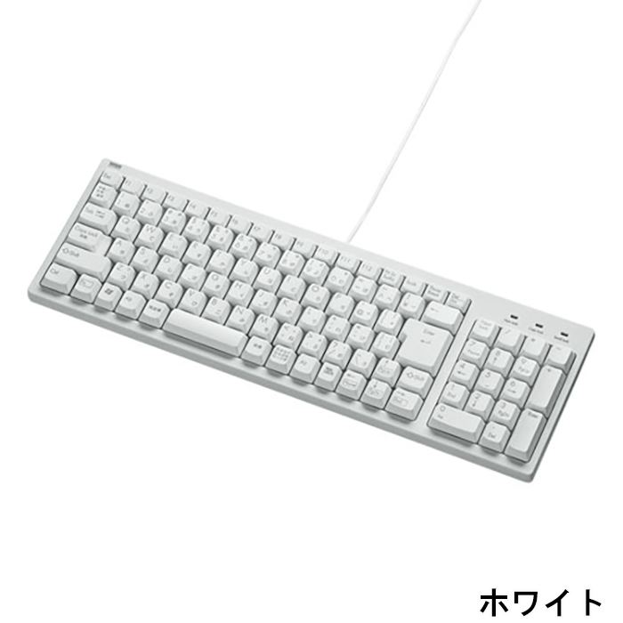 SEARCH WORD:キーボード コンパクトキーボード フルキーボード 有線キーボード 有線 ケーブル長1.5m USB&PS/2両対応 テンキー メンブレンスイッチ 103キー 日本語 耐久性 入力機器 コンパクト 収納 整理 便利 机 デスク 有効活用 黒 ブラック black 白 ホワイト white商品概要:幅400mm以下のコンパクトサイズでありながら、テンキー付きのフルキーボードです。キーピッチはスタンダードキーボードと同じ19mmキーピッチです。文字の耐久性に優れたレーザー印刷を採用しています。使用しない時はキーボードを立てて収納できます。キートップは標準的な深い押し心地のメンブレンタイプです。USB-PS/2コネクタ付きです。USB接続でもPS/2接続でも使用できます。よく使う「ENTER」キーを大型化しました。ケーブルの取り回しに便利なケーブルを固定する溝付きです。(左、右、中心の三方向に固定可能です)カラーバリエーションは、ブラック(JAN:4969887698297/品番:SKB-KG2BKN2)、ホワイト(JAN:4969887698303/品番:SKB-KG2WN2)です。商品仕様: