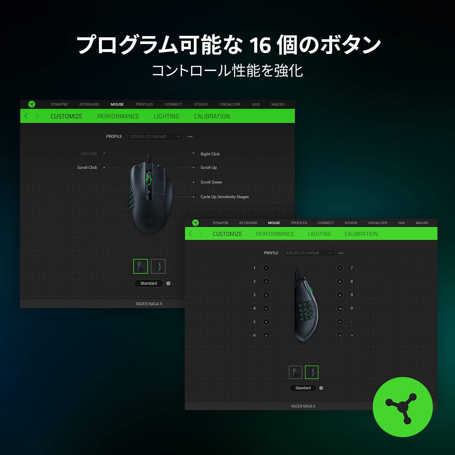 【プログラム可能な 16 個のボタン】Razer Synapse 3 で重要なホットキーやマクロを割り当てて豊富なコマンドを実装。Razer Hypershift の高度な機能を使用して、キーを押すだけで切り替えることができる二次ボタンで操作性を向上できます。