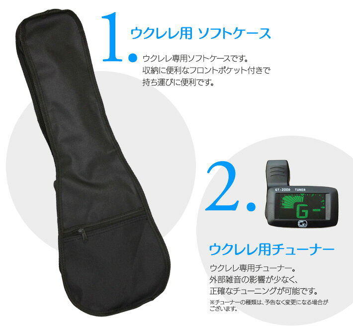 【送料無料】famous FS-1G ソプラノ ウクレレ おすすめセットウクレレケース、ウクレレ チューナー、ウクレレ ストラップ、ウクレレ 弦、ウクレレ カポ、クロスが付いたおすすめセットさらにコード表、コード譜、ピックをプレゼント!!