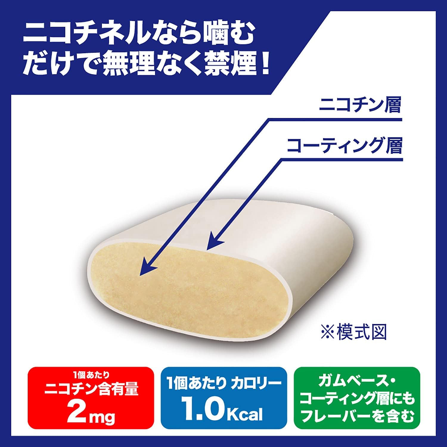 ●糖衣タイプでペパーミント風味のニコチンガム製剤です。 内容量 20個入り×2箱 効能・効果 禁煙時のイライラ・集中困難・落ち着かないなどの症状の緩和 用法・用量 タバコを吸いたいと思ったとき、1回1個をゆっくりと間をおきながら、30-60分間かけてかみます。 1日の使用個数は下記を目安とし、通常、1日4~12個から始めて適宜増減しますが、1日の総使用個数は24個を超えないでください。 禁煙になれてきたら(1ヵ月前後)、1週間ごとに1日の使用個数を1~2個ずつ減らし、1日の使用個数が1~2個となった段階で使用をやめます。 なお、使用期間は3ヵ月をめどとします。