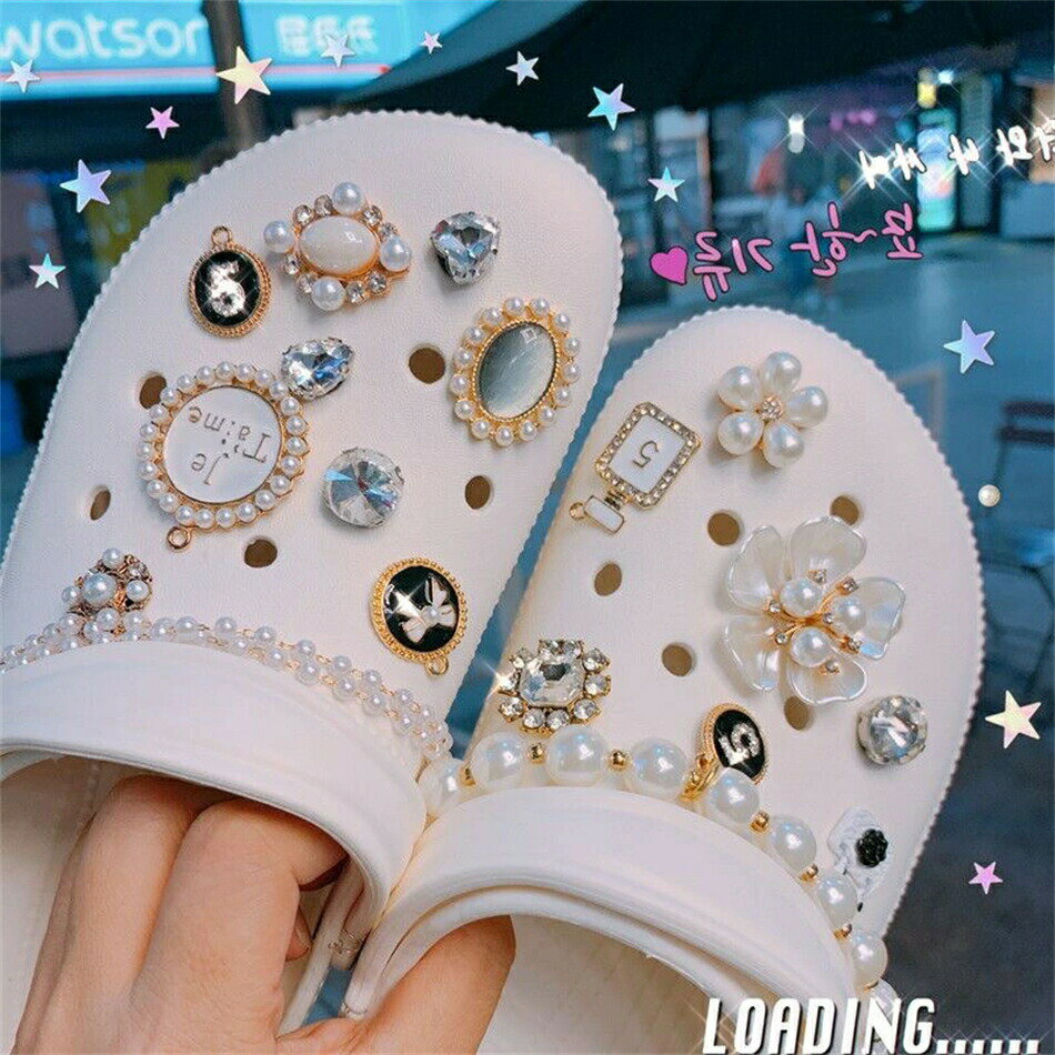 17点セット サンダル デコレーションピン チャームズ ジビッツ SNS話題 オシャレ おしゃれ Y2K パール シルバー ダイヤモンド 上品 きれい 綺麗