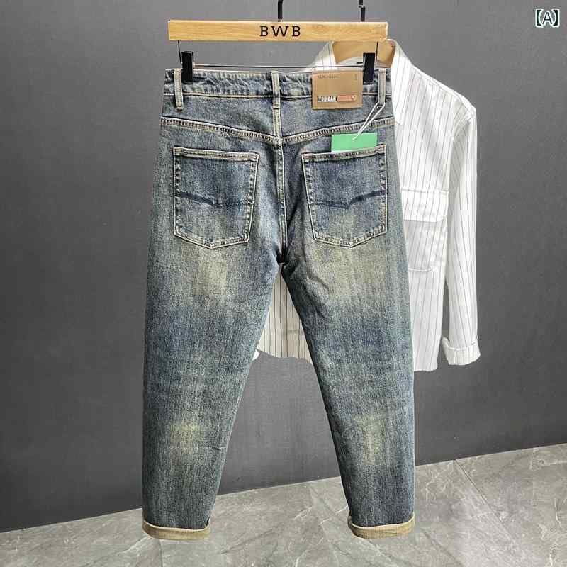秋冬 コーデ メンズ 服 シンプル ファッション オシャレ 大人 かっこいい 大きいサイズ ストリート 紳士服 レトロ ブルー ジーンズ アメリカン ストリート ストレート パンツ
