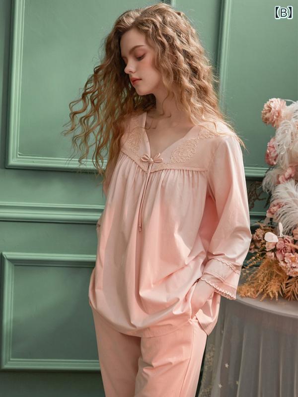 レディース ファッション 服 オシャレ カワイイ 女性用 シンプル 秋 スタイル パジャマ 長袖 レース ホーム アウトドア