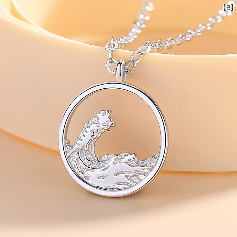 ネックレス ペア S925 シルバー 銀製 波形 ペンダント カップル 学生 恋人 記念日 誕生日 ギフト シルバー925 D152 清新 自然 かわいい