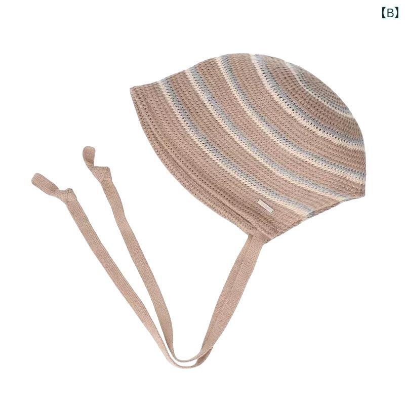 帽子 レディース 漁夫帽 ストライプ リボン ハット 日焼け防止 通気性 旅行用 ブラック カーキ