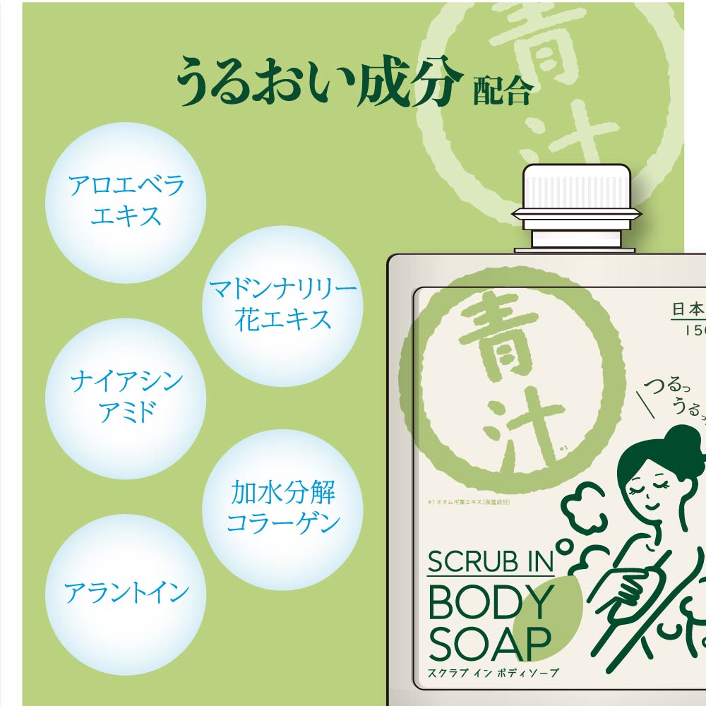 オトク5個セット 1点当たり750円!【在庫あり】青汁スクラブインボディーソープAO ボディソープ ボディスクラブ 150g 肌ケア 角質 うるおい 香り