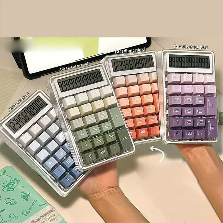 ぽこぽこ 電卓 かわいい 透明 12桁 四角ボタン 大きめボタン 使いやすい 早打ち 機械式 計算機 キーボードボタン タイピング音 グラデーション おしゃれ コンパクト 持ち運び便利 滑り止め 家計管理 簿記 事務 オフィス 学校 事務用品 文房具 電子計算機 仕事用