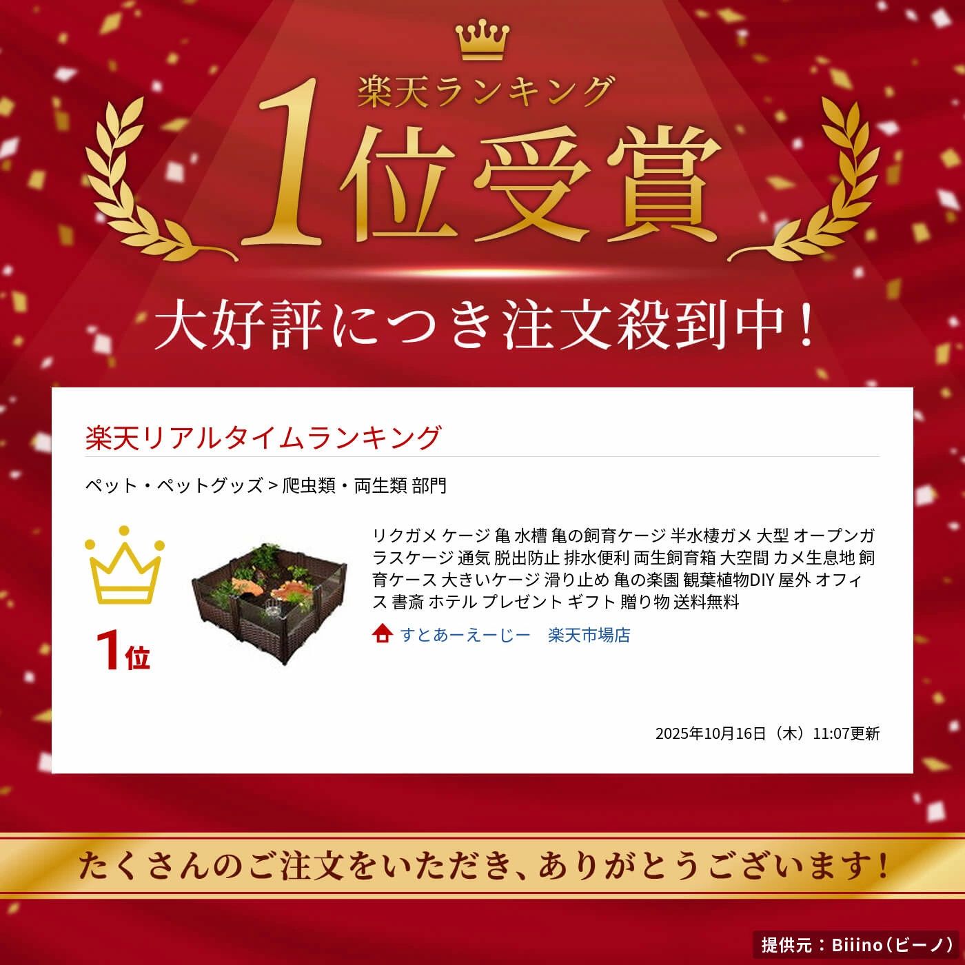 【特別説明】撮影に使用している飾り物は付属しておりません。お好みで石ころや植物を飾り、カメさんの楽園を作りましょう。 お好みで石ころや植物を飾り、カメさんの楽園を作りましょう。 〇多種類のサイズ——5種類のサイズが選択可、組み立て方によってL字型にもなる 〇亀をより健康に——オープンデザインなので、通気性がよい 〇見やすい——ガラス板が付き、観察しやすい 関連キーワード 亀の水槽 飼育ケース タートル 大きい カメの水槽 カメの飼育ケース 脱出防止フェンス 掃除簡単 カメ 大型ケース 飼育ボックス 大空間 水替え便利 送料無料 注意事項 画像はご覧になっているモニターやPCなどの環境により、実物と多少カラーが異なる場合がございます。 ページに記載の通りですが、製造時期や改良などによって仕様が若干異なる場合がございますので何卒ご了承下さい。 基本的には全国一律送料無料と対応させていただきますが、ご送付先は沖縄北海道など離島の場合は2500円の送料をご請求させていただきます、ご注文後追加送料があります。 色味やサイズが異なるなどのクレームはご対応致しかねますので、ご了承ください。 商品のサイズは採寸方法によって、若干な誤差が生じる場合はあります。ご了承ください。 こちらの対応と商品について何かご不満がありましたら、「レビュー」を付ける前に一度ショップとご連絡してお願いいたします、ショップの誠意を持って最後まで対応させていただきます。 品質保証 ◎販売している商品は全て新品未使用です、倉庫から出荷前に検品必要ですので、箱を開封する場合もございます、予めご了承くださいませ。 ◎初期不良の場合は到着後3営業日以内にご連絡ください。 ◎初期不良の場合は写真や動画を送って下さい、確認後無料で新品交換もしくは御返金致しますのでご連絡下さい。 ◎写真や動画を送っていただけない場合は技術者と確認できません、返品返金対応出来ない可能性が御座います、予めご了承くださいませ。