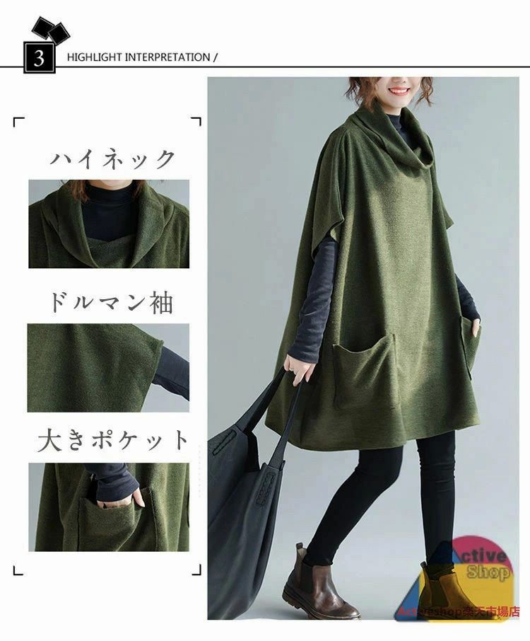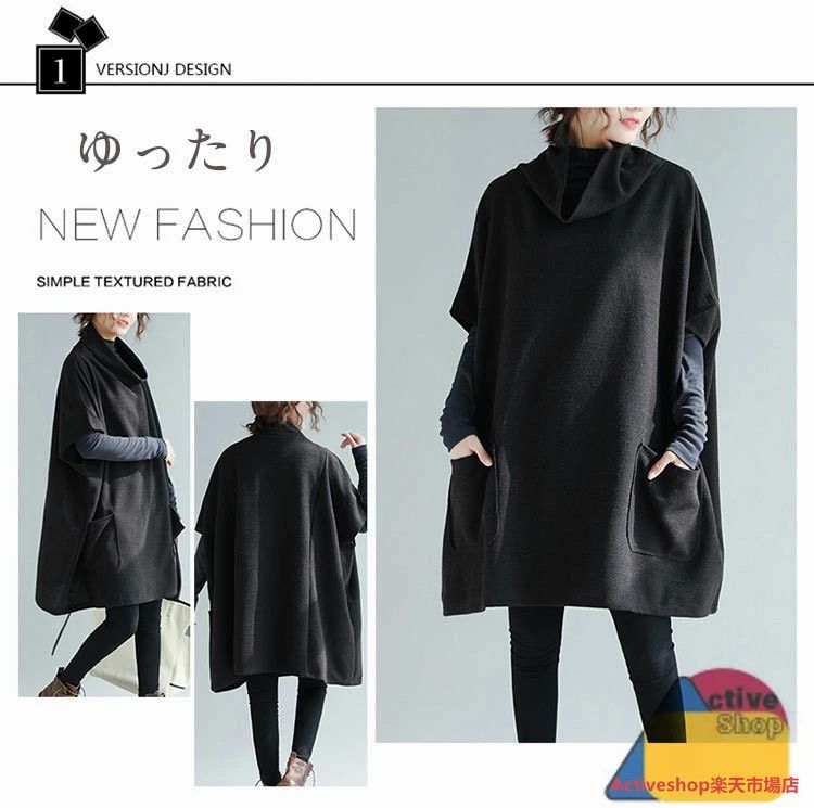 大き 体型カバー ハイネック タートルネック ひざ丈 秋 レディース チュニックワンピース ゆったり トップス パーカー ドルマン