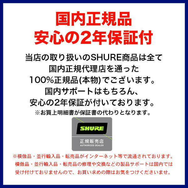 ●この製品はどのような音がしますか? きらめくような美しいサウンドと最適に調整された周波数特性を備えたSM57は、ライブでの音空間の創造やレコーディングに最適です。また、極めて効果的なカーディオイド・ピックアップ・パターンは主音源を分離し、周囲の不要な雑音を最小限にカットします。スタジオでは、ドラムやギター、木管楽器のレコーディングに大きく貢献します。 《特徴》 ・最適に調整された周波数特性により、楽器の音色を美しく、ボーカルを豊かに再現 ・ドラム、打楽器、楽器アンプのマイキングを可能にする、プロ品質の再現力 ・均一なカーディオイド・ピックアップ・パターンが主音源を分離し、周囲の雑音を低減 ・エアー式ショック・マウント・システムがハンドリング・ノイズをシャットアウト ・ハードな使用条件にも対応可能な、極めて高い耐久性 ・周波数特性:40 Hz〜15 KHz ・指向特性:カーディオイド ・コネクタ:XLR3ピン、オス ・寸法:φ32×全長157mm ・質量:284g ・付属品: マイクホルダ(A25D)、マイクポーチ、3/8"→5/8"変換ねじ 関連商品《在庫あり 即納可能 3セット》SHURE シュアー SM58-LCE...《即納可》 オーディオテクニカ AT4040 コンデンサーマイク + ...49,500円49,500円《在庫限り特価 即納可能》 SHURE シュアー BETA57A ダイ...SHURE カーディオイド型 ダイナミック マイク SM7B《国内正規...50,600円52,030円《在庫在り 即納可能》SHURE MV88+SE215-CL-A コ...《アウトレット品》 ダイナミック マイク SHURE シュアー MV7...48,400円48,400円《在庫あり 即納可能 3本セット》 SHURE シュアー SM57-L...《即納可》 オーディオテクニカ AT4040 コンデンサーマイク + ...52,800円50,600円《即納可》 オーディオテクニカ AT4040 コンデンサーマイク + ...《在庫あり 即納可能 3セット》SHURE シュアー SM58-LCE...47,300円52,800円《セット内容》 シュアー SM57-LCE ダイナミックマイク 3本 卓越した性能、数々の伝説を生み出した信頼性、高い汎用性を併せ持つSM57は、世界中のプレイヤー、プロデューサ、エンジニアが認める「最高傑作」としての地位を確立しています。