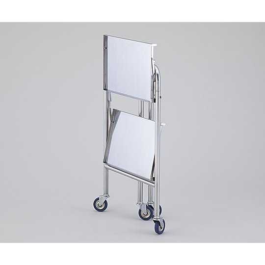 仕様 材質:ステンレス(SUS304) 折りたたみ時サイズ:500×200×940mm(自立不可) 天板サイズ:435×282mm キャスター:φ75mm(ストッパー無し) 耐荷重:10kg/棚 重量:7kg 足パイプ径:φ25mm 幅×奥行×高さ(mm):500×290×830 型番:315