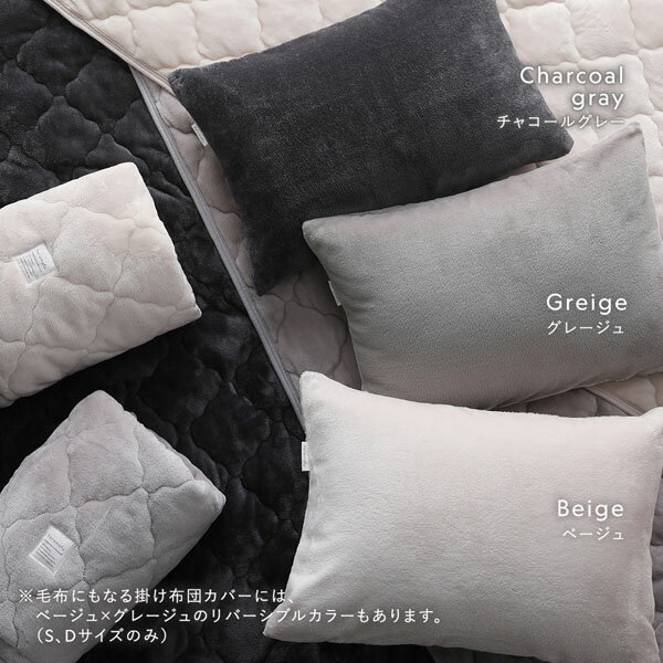 ■カラー・掛け布団カバー ベージュ、グレージュ、チャコールグレー、ベージュ×グレージュ ※ベージュ×グレージュはシングル・ダブルサイズのみのお取り扱いです。・枕カバー、敷きパッド、ボックスシーツ、ブランケット ベージュ、グレージュ、チャコールグレー ※ベージュ×グレージュの展開はございません。